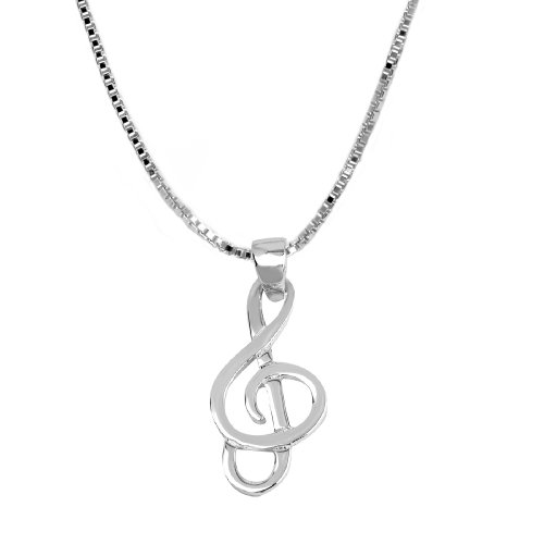 The Sterling Silver Musical Note Pendant makes a wonderful gift for the musician in your life. Resting at the base of an included 18-inch box chain is a treble-clef symbol crafted in 925 sterling silver. Its .83-inch by .43-inch size is able to showcase the detail of the musical symbol without being too overbearing of an accessory. The box chain is finished with spring-ring clasp that secures the pendant in place.